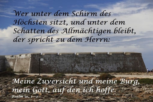 Sei nur still zu Gott, meine Seele, denn er ist meine Hoffnung. Er ist mein Fels, meine Hilfe und mein Schutz.
